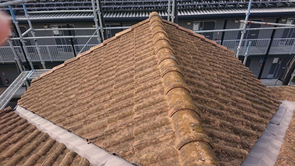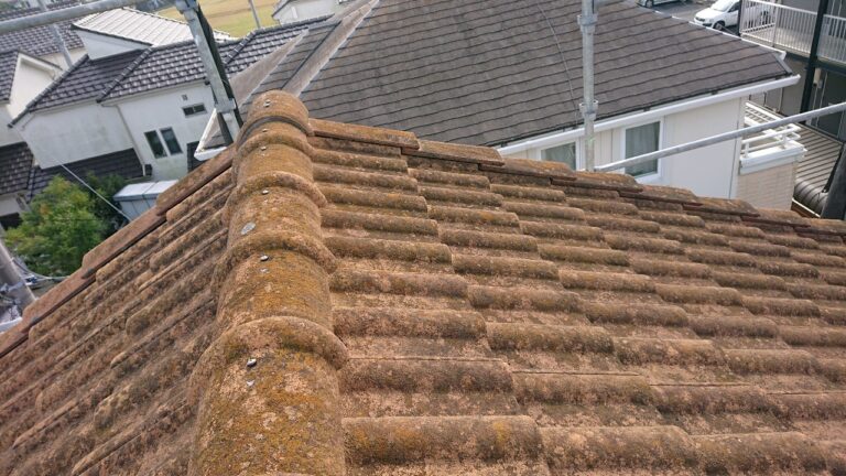 こちらが施工前の屋根のモニエル瓦の状態です。屋根表面には色褪せや乾燥が目立ちます。